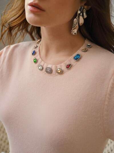 WOMEN'S RHINESTONE EMBELLISHED SHORT SLEEVE KNIT TOP-26%