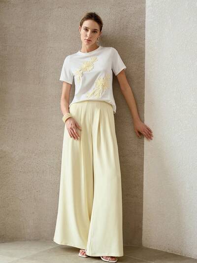 WOMEN'S FLORAL DECOR ROUND NECK SHORT SLEEVE T-SHIRT