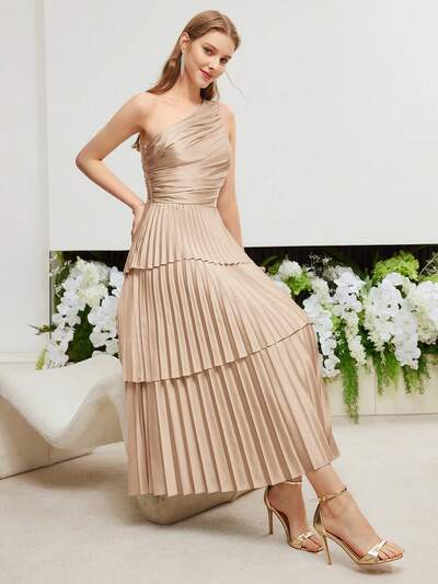 RUCHED PLEATED ONE SHOULDER DRESS-34%