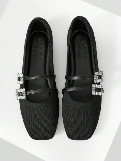 PU LEATHER RHINESTONE DECOR FLAT SHOES VALENTINE'S DAY SPRING SHOES-34%