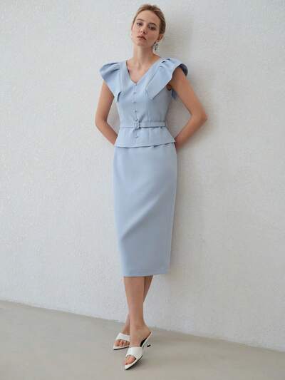 FLOUNCED WAIST ELEGANT DATE/COMMUTE MIDI DRESS-23%