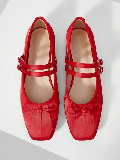 WOMEN'S ELEGANT MINIMALIST COMMUTING SOLID COLOR BOW DECOR DOUBLE BUCKLE STRAPS BALLET FLATS SHOES FOR CHRISTMAS VALENTINE'S DAY