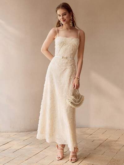 FUZZY TEXTURED LACE UP BACK SLIP MAXI DRESS, WOMEN OUTFIT