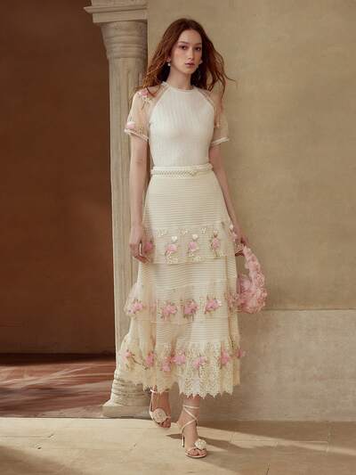 EMBROIDERY FLOWER CONTRAST LACE SKIRT-14%