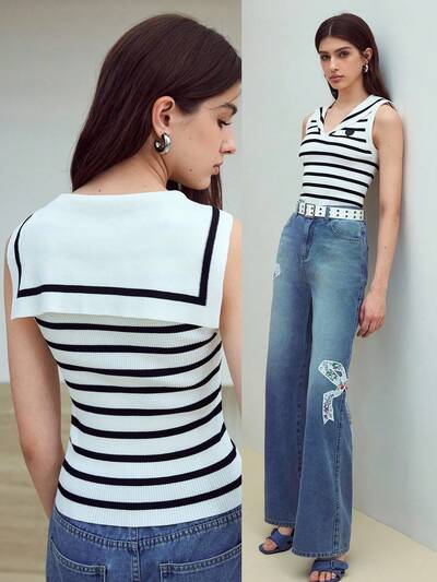 MOTF STUDIO STRIPED SAILOR COLLAR KNIT TOP-54%