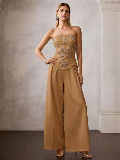 MOTF Soiréza WOMEN'S SPRING/SUMMER RHINESTONE EMBELLISHED JUMPSUIT-42%