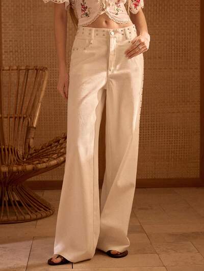 MOTF STUDIO WOMEN'S FLARE LEG STUDDED JEANS-60%