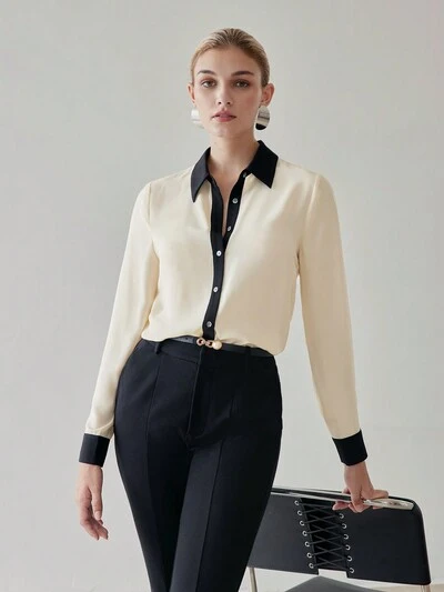 SATIN PATCHWORK ELEGANTES MINIMALISTISCHES TRANSPARENTES PANEEL HEMD, FRÜHLING/SOMMER-36%