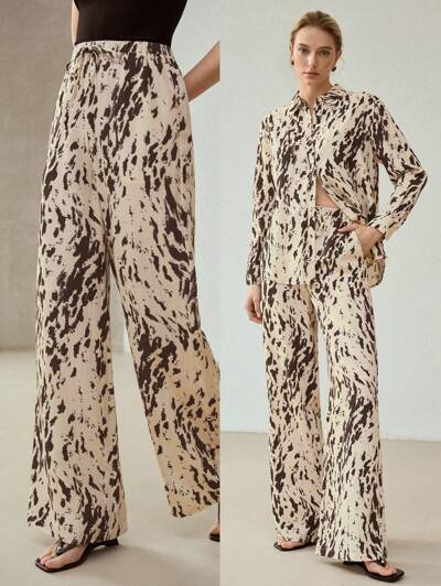 Hose mit Allover-Muster und schrägen Taschen-25%