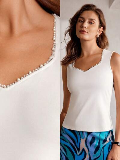 MOTF Classy Elegantes Tank Top mit Perlen besetztem Sweetheart-Ausschnitt-42%