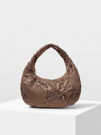 DAMEN HANDTASCHE, ZART BESTICKTE HALBRUNDE SHOPPER TASCHE-19%