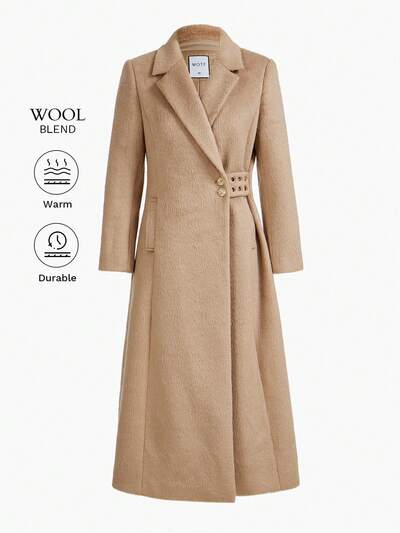 MOTF STUDIO WOLL-REVERS-KRAGEN SCHRÄGGESETZTE TASCHE KNOPF-SEITE LANGMANTEL FÜR HERBST/WINTER-58%