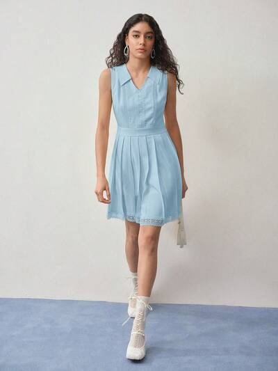 MOTF STUDIO Damen Spitze Urlaubs Bindetaille Kleid, Frühling/Sommer-36%