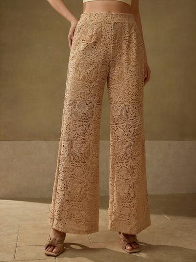 Hose mit weitem Bein ohne Gürtel mit Strass-Detail an der Naht-21%