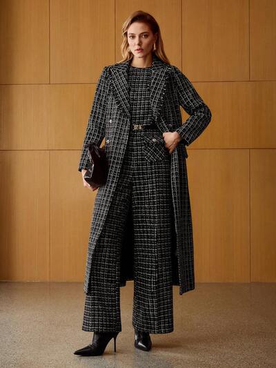 Damen Tweed eleganter Pendler Doppelreiher Mantel-62%