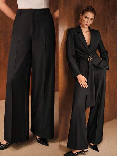 Damen Bügelfalte Weite Bein Lang Anzughose-55%