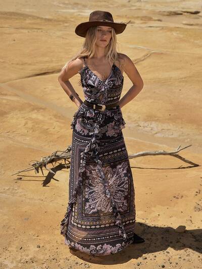 MOTF STUDIO Damen Urlaubs Trägerkleid mit Blume Muster, gerüschter Taille und Gürtel, Frühling/Sommer-23%