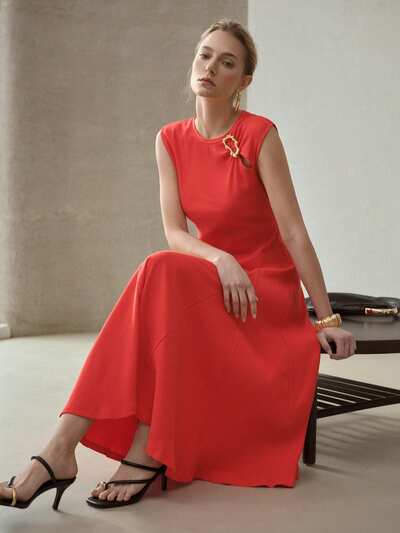 VESTIDO DESLIZANTE CON DETALLE DE LAZO Y RIBETE DE CONTRASTE-38%