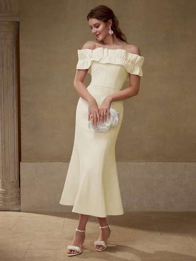 VESTIDO JACQUARD DE LONGITUD MEDIA ELEGANTE PARA MUJER SIN CINTURÓN-56%