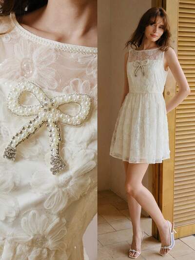 MOTF STUDIO VESTIDO MINI ELEGANTE DE COLOR DE CONTRASTE CON BROTE DE FLOR PARA UNA CITA-38%