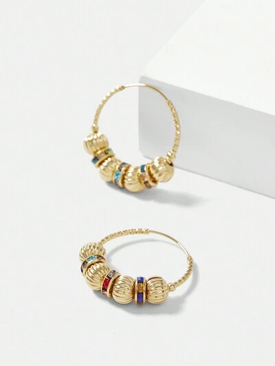 PENDIENTES DE ARO CON MICRO-INCRUSTACIONES DE DIAMANTE EN COLOR DORADO DE MODA