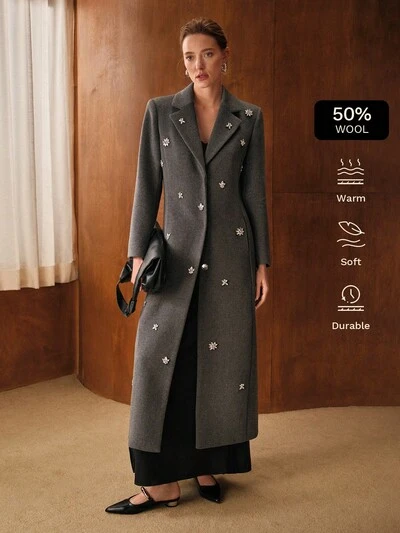 ELEGANTE ABRIGO AJUSTADO DE MEZCLA DE LANA CON ADORNOS DE STRASS PARA FIESTA EN OTOÑO/INVIERNO-44%