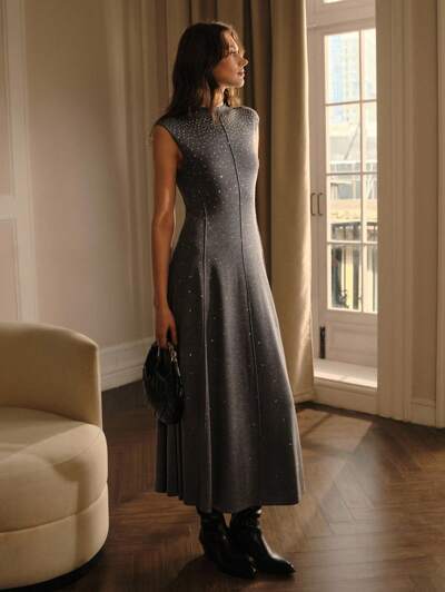 VESTIDO DE SUÉTER SIN MANGAS CON ADORNOS DE RHINESTONE TEJIDOS-55%