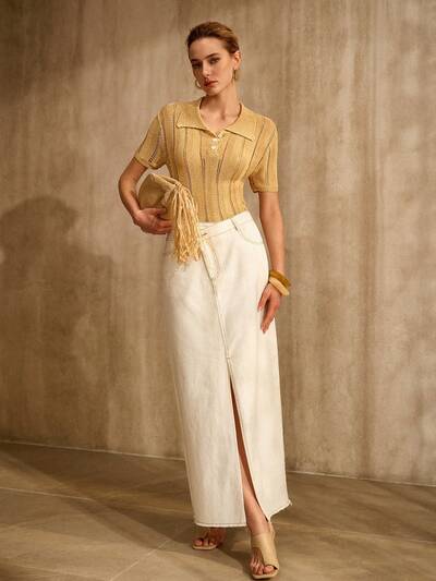 Falda vaquera con botones y bolsillos en diagonal para otoño e invierno-65%