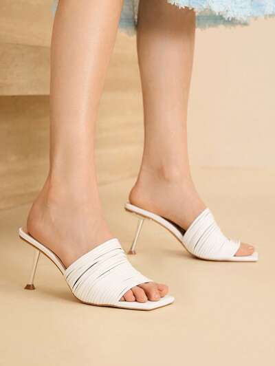 Sandalias de tacón de aguja blancas versátiles y elegantes de estilo minimalista para uso diario y de oficina