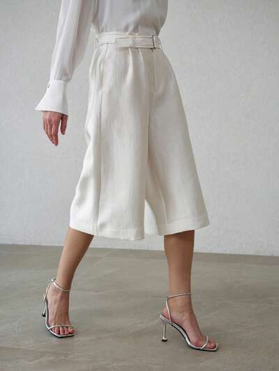 PANTALONES ANCHOS BLANCOS ACAMPANADOS PARA MUJER CON CINTURÓN, PRIMAVERA/VERANO-25%