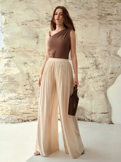 PANTALONES ANCHOS DE TRAJE CON EFECTO VAQUERO DE MEZCLA DE LINO Y PLIEGUES PARA MUJER-56%