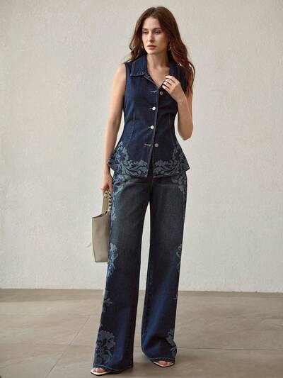 JEANS DE PIERNA RECTA CON ESTAMPADO FLORAL