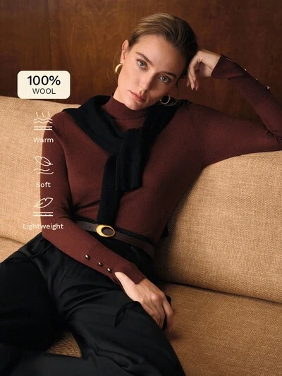 SUÉTER DE PUNTO AJUSTADO DE CUELLO ALTO, OTOÑO/INVIERNO-26%