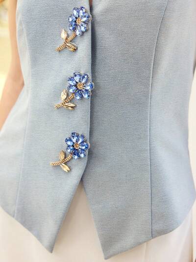 Top de tirantes de mezclilla con botón de flor de strass para mujeres-59%