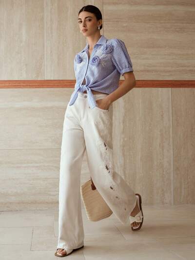 MOTF STUDIO Top bordada de lino