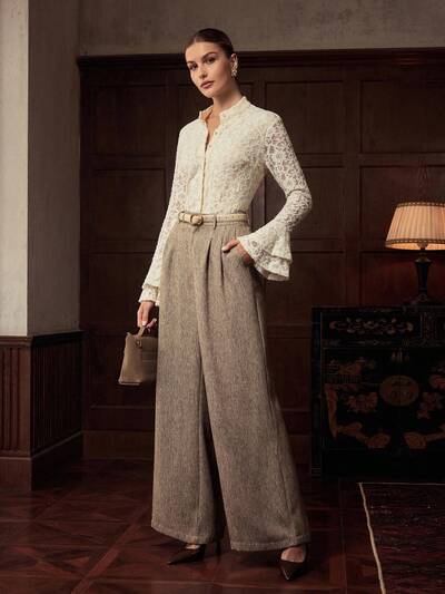 Top ajustado y ceñido sin mangas con cuello de pie de encaje para mujeres en verano-46%