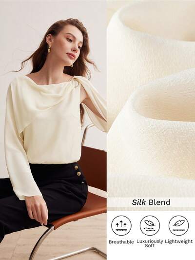 Blusa Asimétrica De Hombro De Seda Sólida-32%