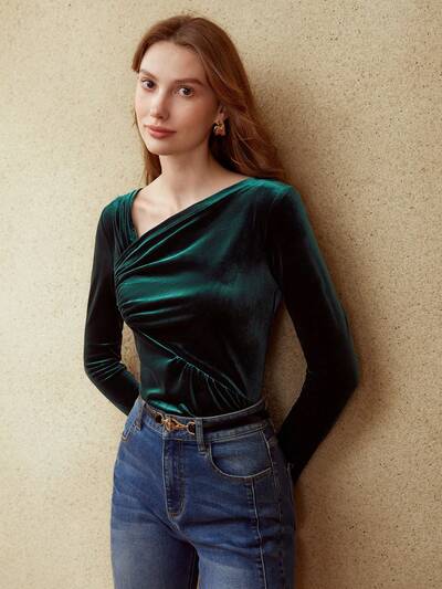 CAMISETA DE TERCIOPELO FRUNCIDA
