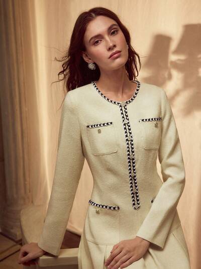 VESTIDO CORTO CON DETALLE DE VOLANTE CONTRASTANTE, BORDADO, LENTEJUELAS Y FALSAS PERLAS DE TWEED-51%