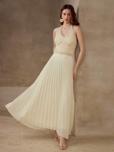 VESTIDO PLISADO DE GANCHILLO CON CONTRASTE-23%