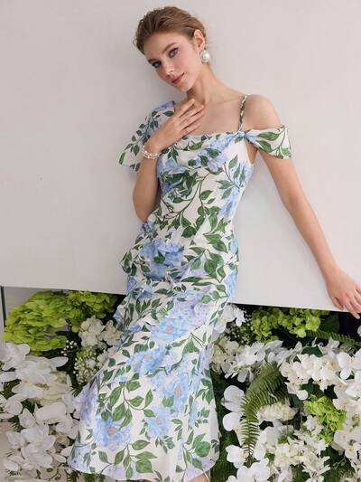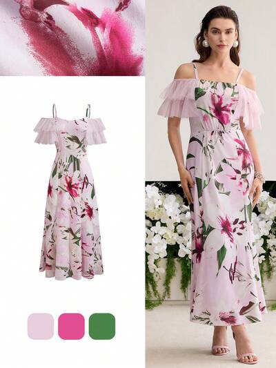 Vestido con estampado floral y volante-23%