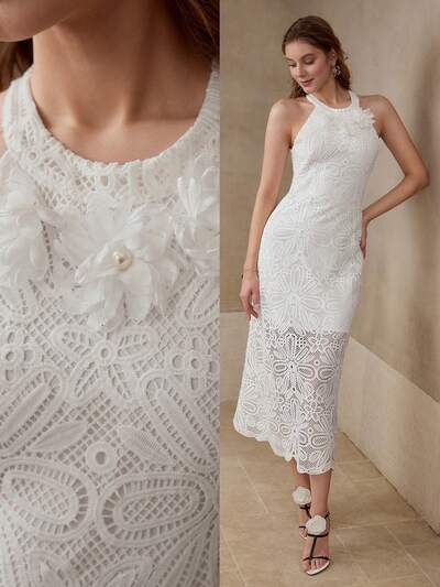 VESTIDO CON APLIQUES DE ENCAJE GUIPURE-23%