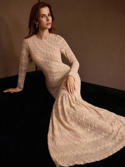 VESTIDO DE LÍNEA A DE ENCAJE ROMÁNTICO Y ELEGANTE PARA MUJER-34%