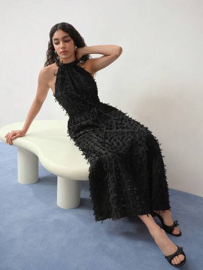 MOTF STUDIO VESTIDO CON CUELLO HALTER Y DOBLADILLO CON VOLANTES TEXTURIZADOS-46%