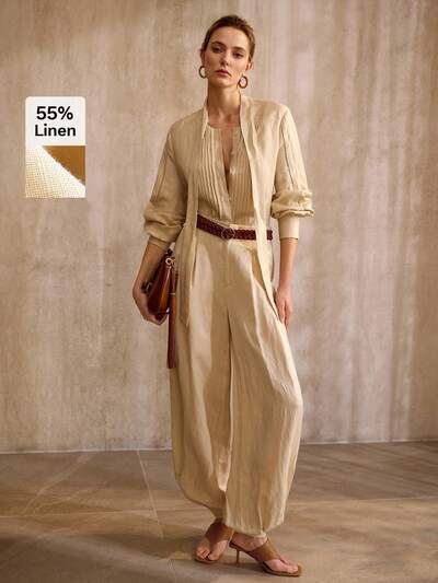 Pantalones de linón con estilo vintage y elegante, estilo urbano, para primavera/verano. Cinturón no incluido.-23%