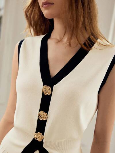 BLUSA SIN MANGAS DE PUNTO DE COLOR CONTRASTANTE, PRIMAVERA/VERANO-34%
