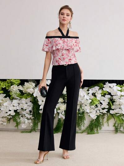 Blusa con parche floral de un solo hombro para ropa de Año Nuevo-32%