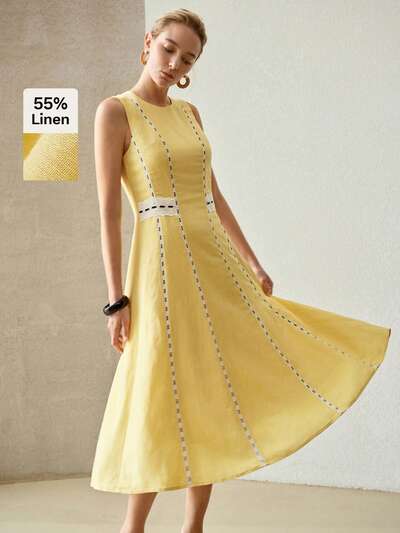 VESTIDO MIDI ESTILO FRANCÉS CON ESCOTE PROFUNDO EN V, SIN MANGAS, CINTURA CEÑIDA Y LÍNEA A-46%