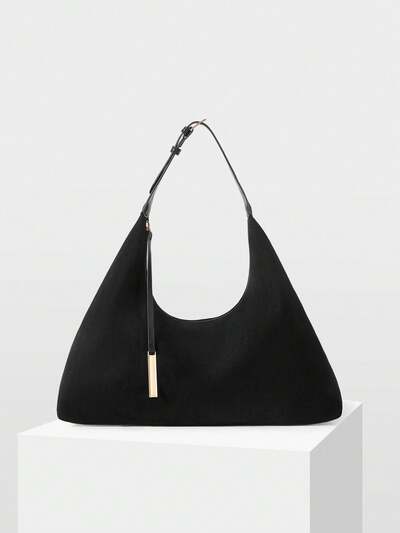 BOLSO DE HOMBRO TIPO CUBO DE ANTE SÓLIDO EXTRA GRANDE, COMBINA PERFECTAMENTE CON ATUENDOS DE OTOÑO PARA MUJER