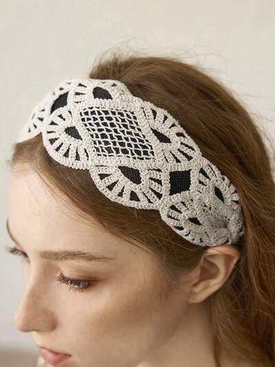 DIADEMA ANCHA DE ENCAJE BLANCO CALADO